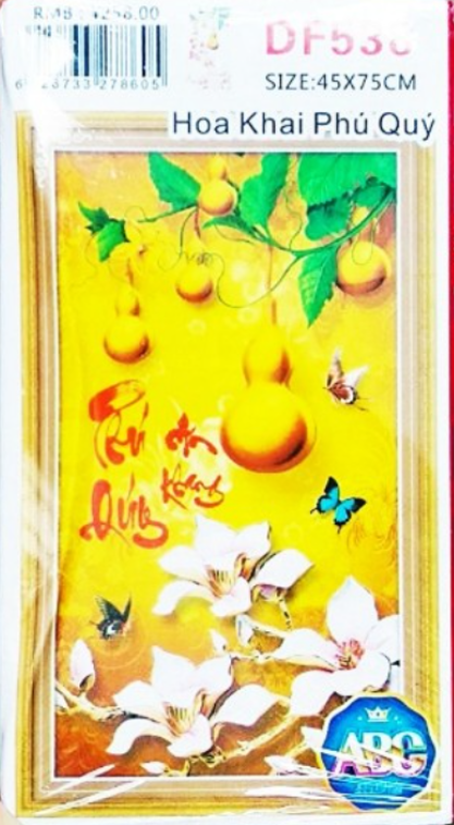 Bộ sản phẩm Tranh Đính Đá ABC 3D Hoa Khai Phú Qúy bao gồm:
